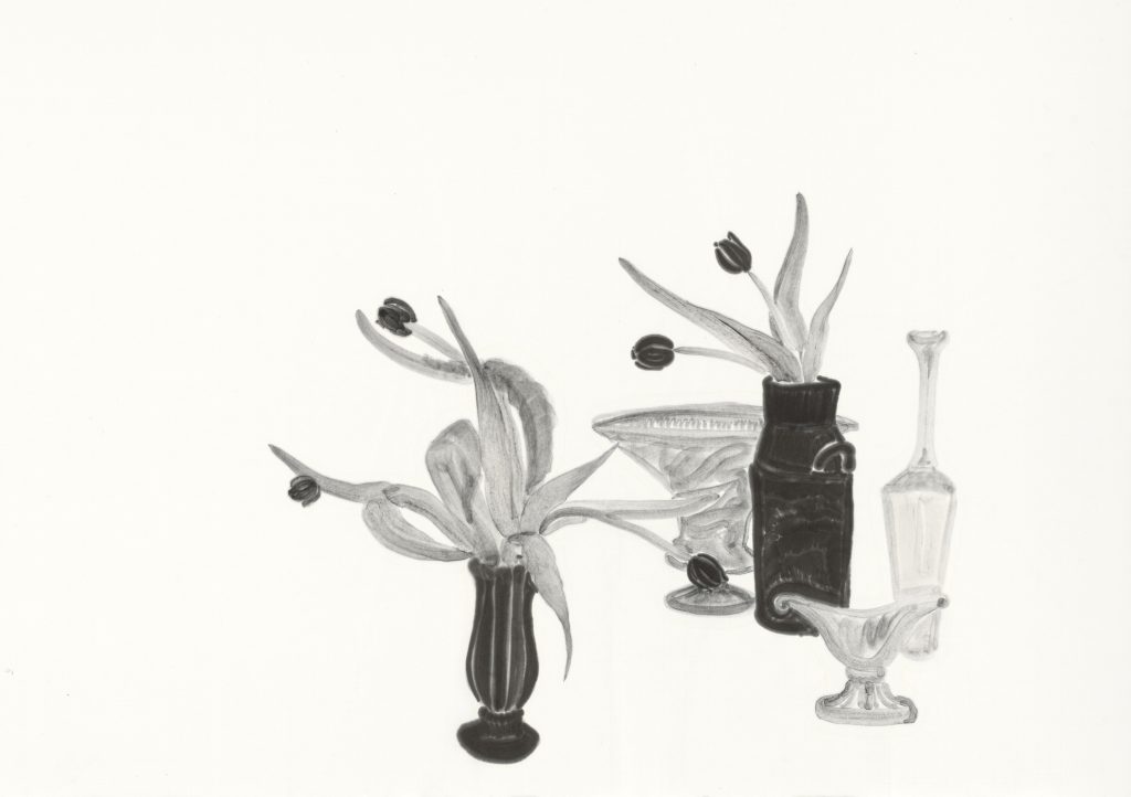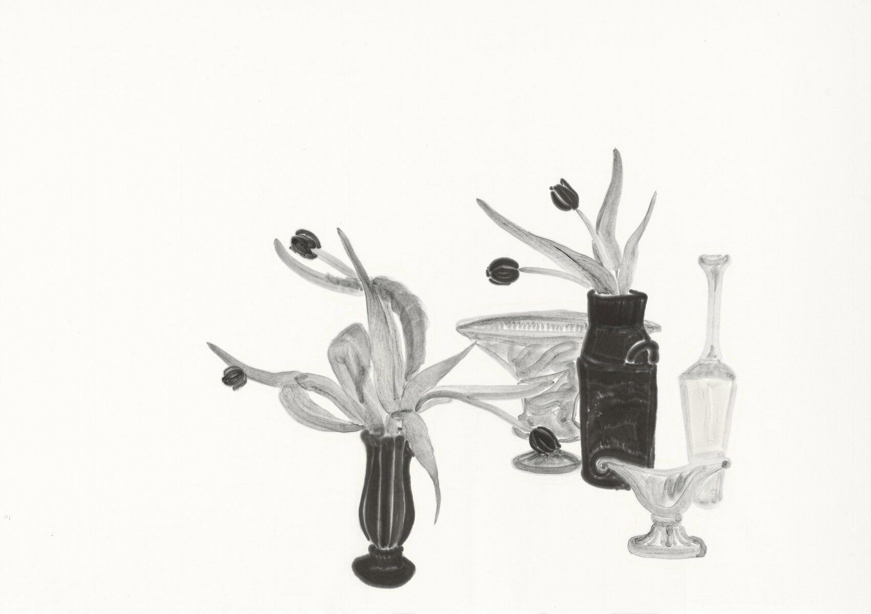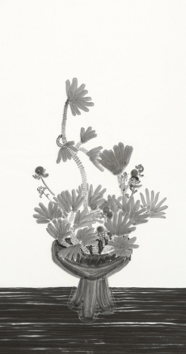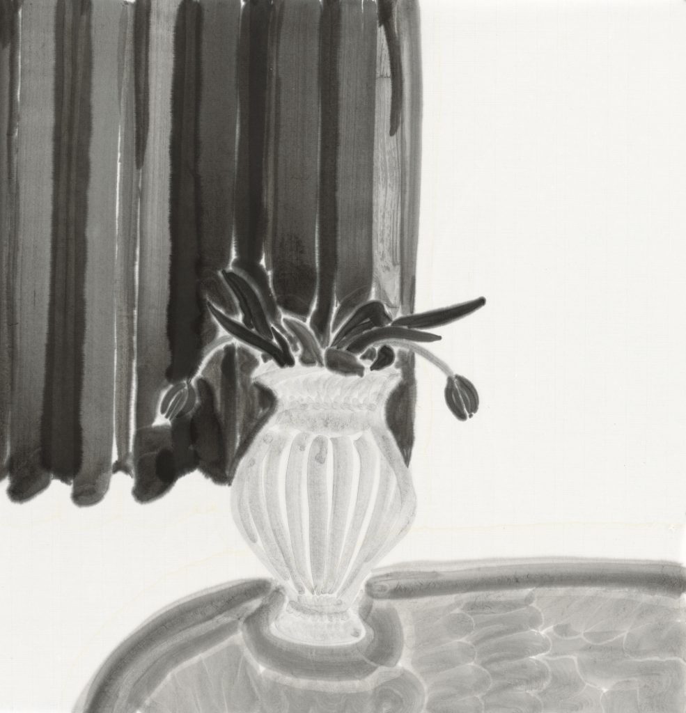 楊寓寧Yang Yu-Ning_向光斜倚的鬱金Tulips Leaning Toward the Ligh_墨水紙本Ink on paper_71.5x100cm_2025