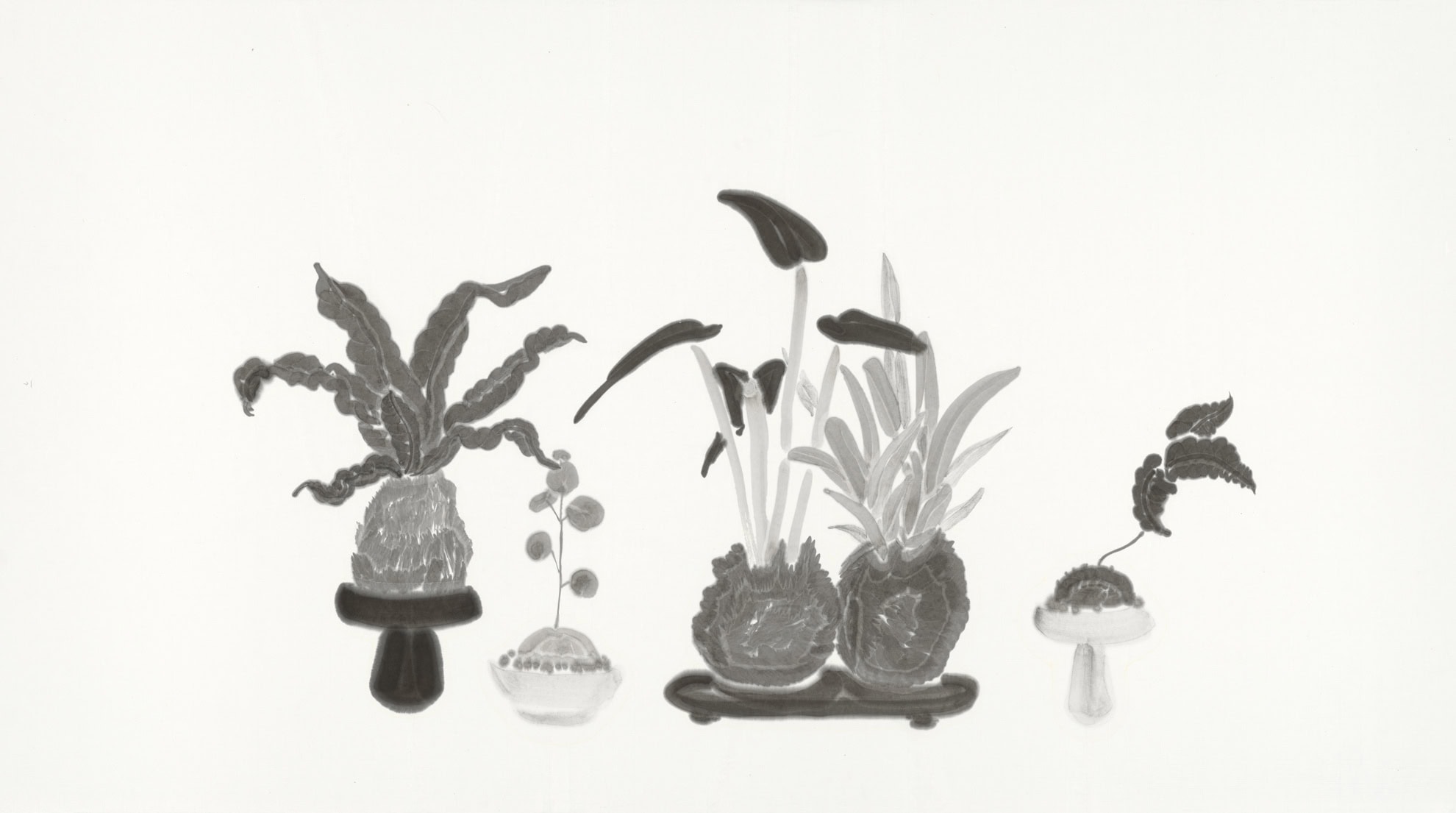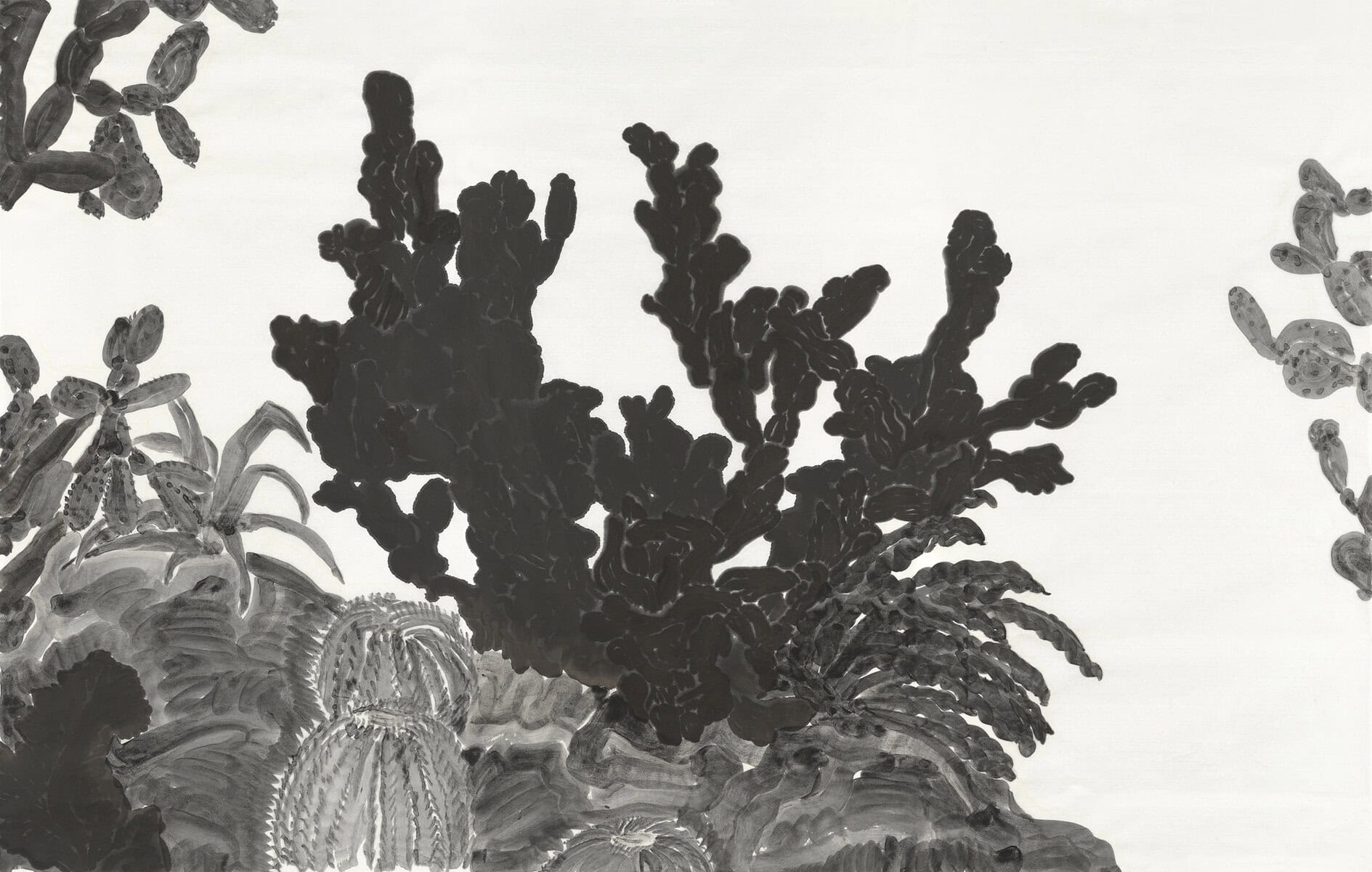 楊寓寧Yang Yu-Ning_舒展在溫室內Stretching in the Greenhouse_墨水紙本Ink on paper_181x281cm_2022