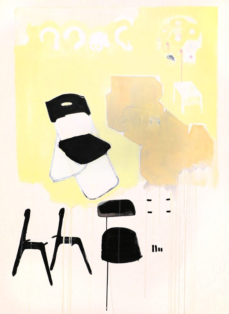 郭秉恩_高腳椅與骷髏_壓克力、木板 _22x33cm_2024