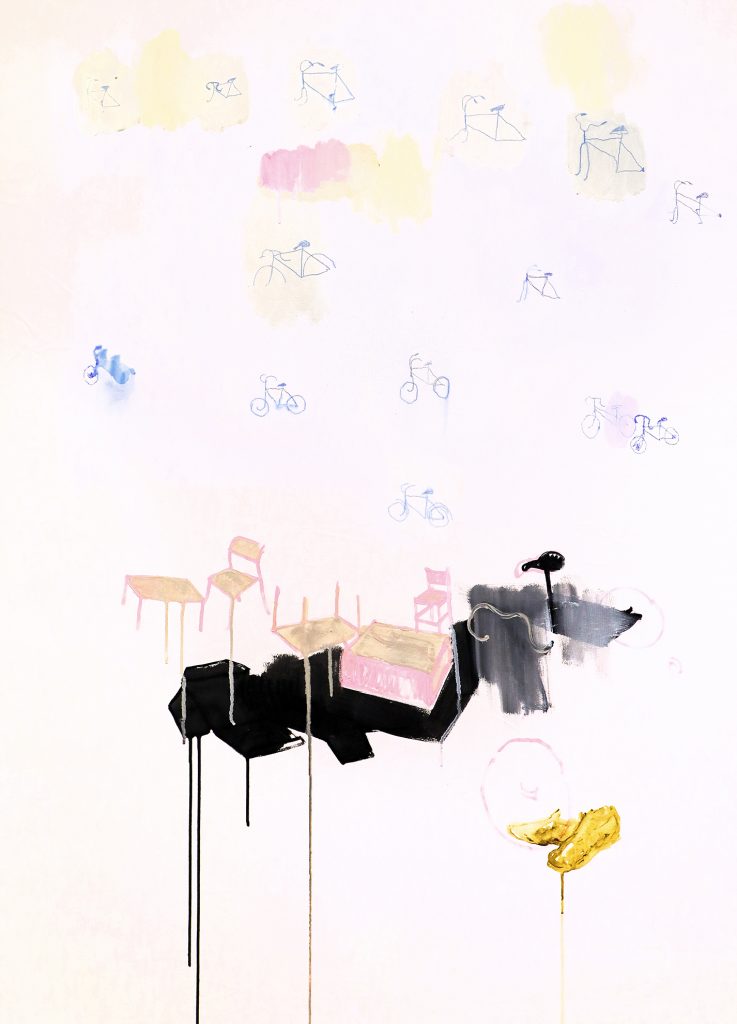 郭秉恩 Pingen Kuo_腳踏車 3 Beyek 3_畫布、壓克力、原子筆 acrylic on canvas, Ballpoint Pen_135x155cm_2025